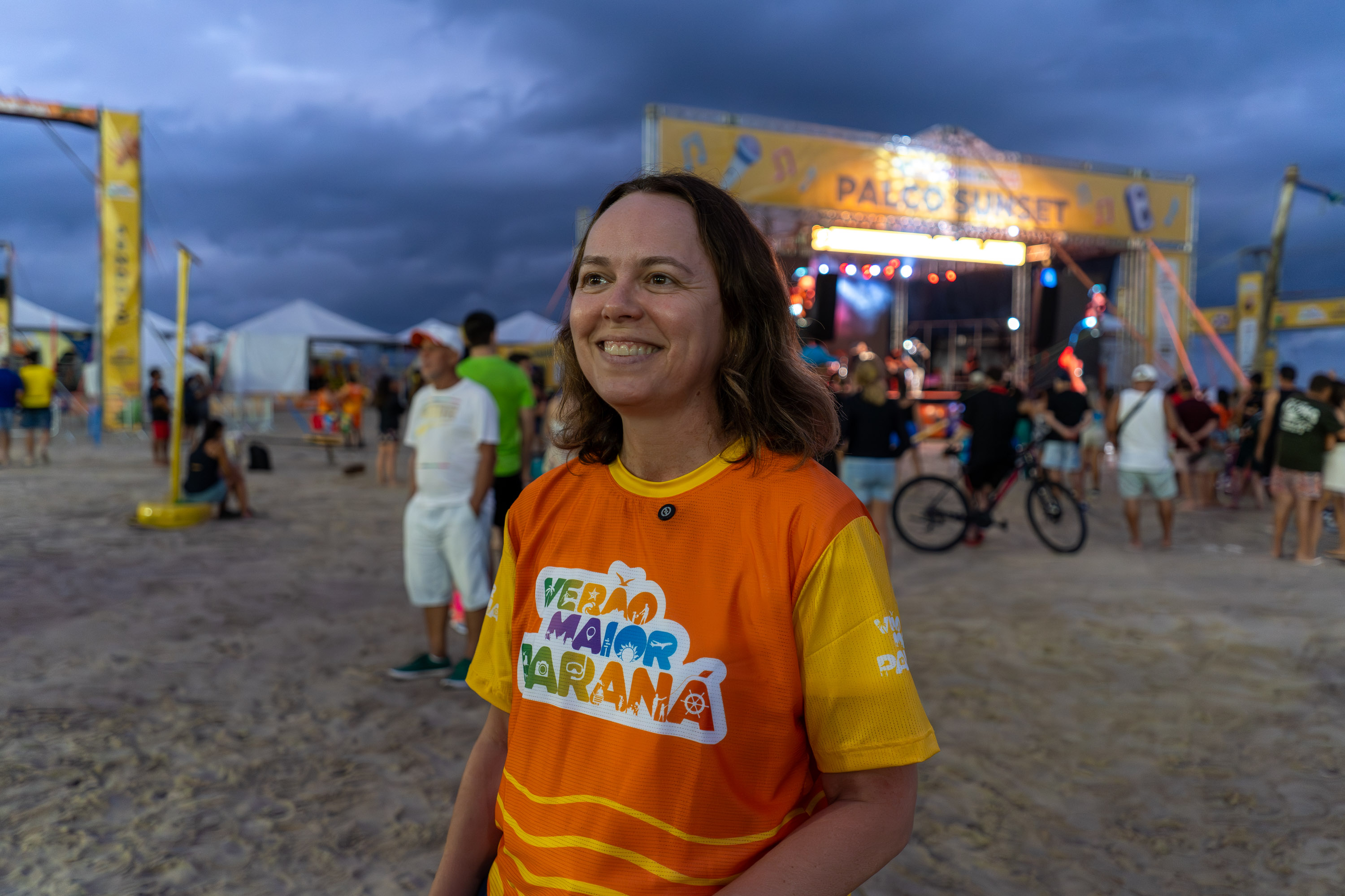 “A gente está muito feliz por estar abrindo a programação do Palco Sunset com artistas aqui do Litoral, trazendo também músicos de outras cidades do Paraná para tocar aqui. Tem artistas do Paraná todo circulando pelo Estado, é lindo de ver”, afirmou a secretária estadual da Cultura, Luciana Casagrande Pereira.