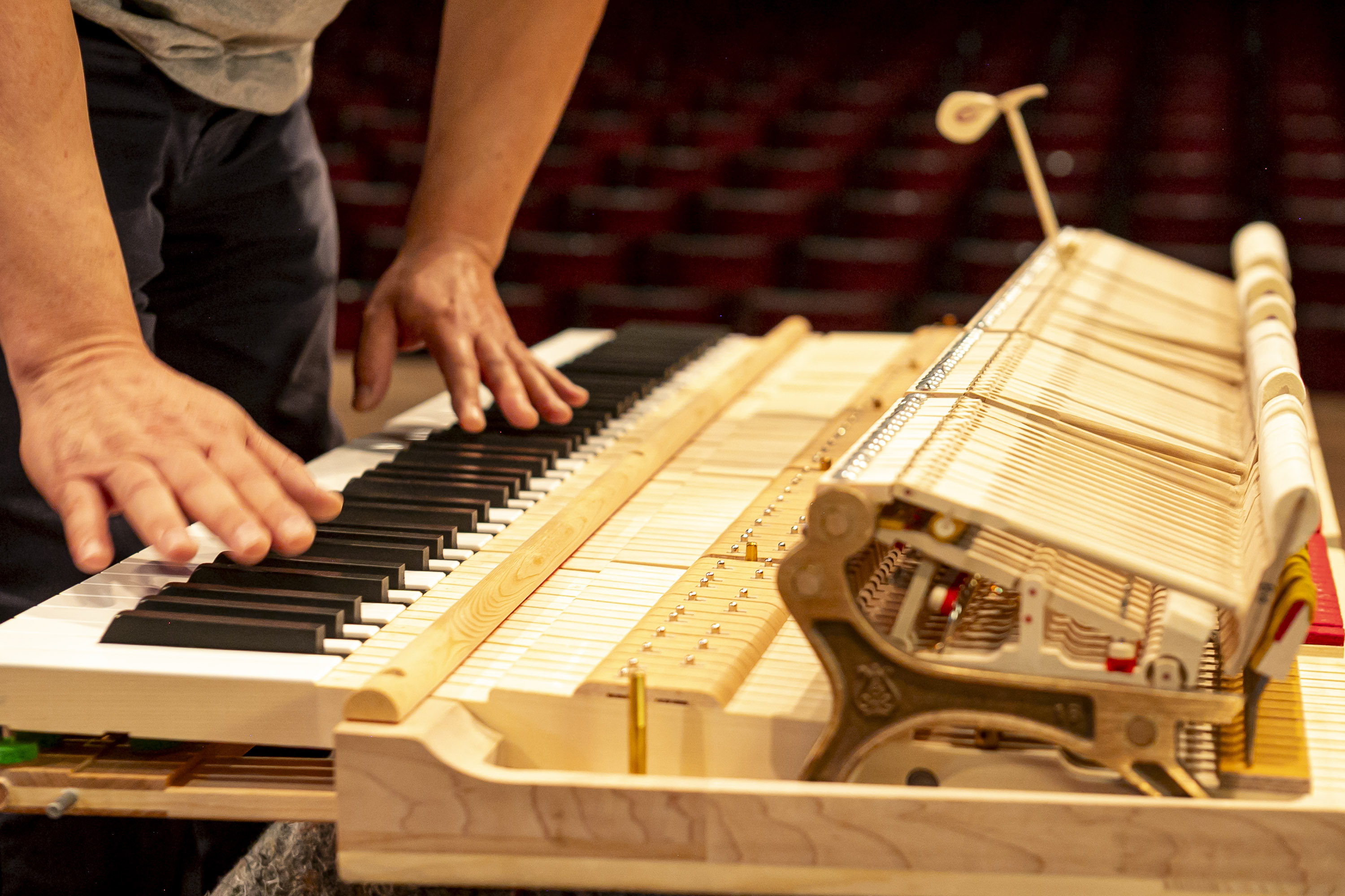 “Ele precisa de um ajuste principalmente tímbrico de projeção, apropriado para esse local, ou seja, ele vai ser montado para essa área. É um processo longo porque são muitos itens a serem não só checados e ajustados, mas, se a gente lembrar que o piano tem 88 teclas, cada ajuste tem que ser multiplicado por esse número”, explica o técnico.