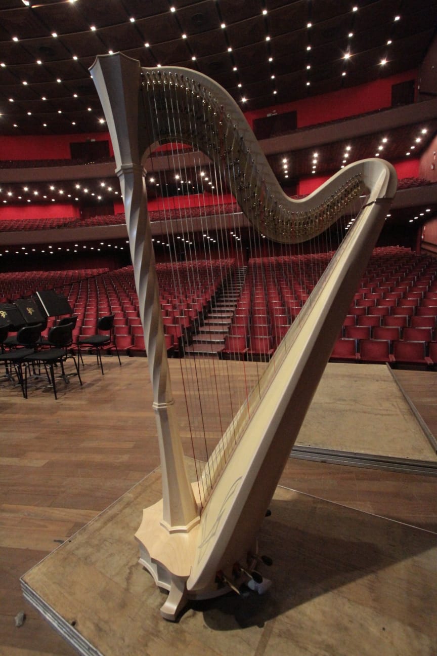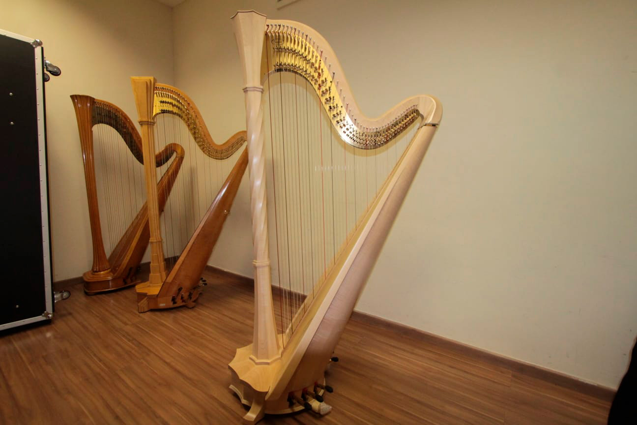 ADAPTAÇÃO – Antes de ser utilizada em concerto, porém, a nova harpa precisará passar por um período de adaptação. Durante o transporte internacional, as cordas são mantidas completamente frouxas para evitar danos estruturais. Após a chegada, é necessário afiná-las gradualmente até atingir a tensão ideal — processo que pode levar dias ou até semanas, enquanto a madeira do instrumento se adapta à pressão das cordas.